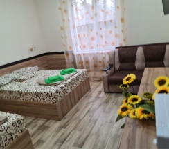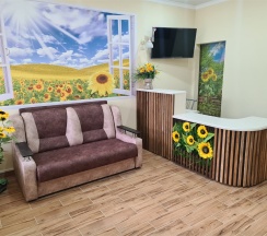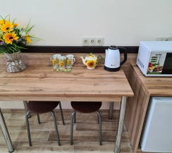 Отличное место. Очень чисто, уютно. Качественный ремонт, всё свежее. В номере часы, картина, кружечки с подсолнухами, мелочь, а настроение создаёт. В гостинице есть полноценная кухня, тоже очень уютная. Всё сделано с душой и вкусом, спасибо.