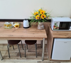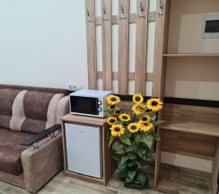 Большое спасибо за организованный отдых, очень чисто, удобный номер, доброжелательное обслуживание, мы задерживались в пути администратор перезвонила уточнила едем ли мы, в номере есть холодильник, микроволновка, чайник, есть отдельно кухня. Фото соответствуют. Есть стоянка для автомобиля. Есть один минус плохая подъездная дорога, но это замечание не к отелю. Отдыхом довольны, рекомендуем