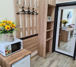 Были проездом.Понравилось всё.Внимательная хозяйка.В отеле новый ремонт,новая мебель,сантехника.Чисто и приятно,тихо.Есть отдельно кухня,можно приготовить перекус ,особенно актуально гостям с детьми.В номере холодильник реально холодит.Спасибо за заботу.Приятно удивила цена за номер.🔥