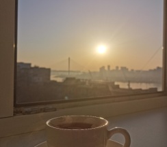 Вид из окна потрясающий - с одной стороны мост и порт, с другой Бурный.