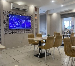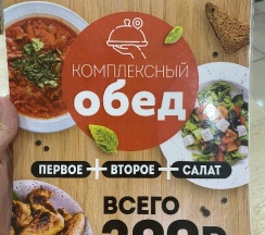 Внутри кафе чисто, свежий ремонт. Обслуживание желает лучшего: официант про нас забыл (часть блюд принёс, а другую пошли напоминать сами), пустые тарелки не забирает (на столе поучился избыток посуды). Цена-качество: комплексный обед по цене, качеству и объему норм (из всех блюд он был самым вкусными), суп лапша норм, а вот второе - котлетки из мраморного бычка с пюре -не зашли, очень маленькие порции котлет и пюре, а цена как у больших. За ланч-бокс оплачиваете отдельно.