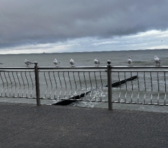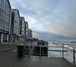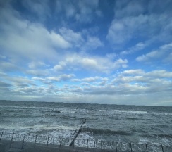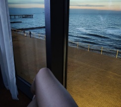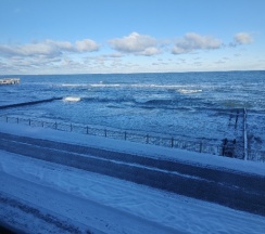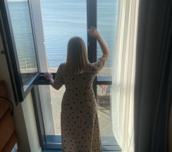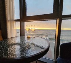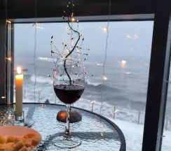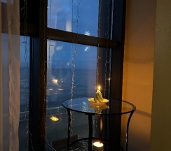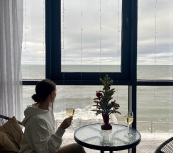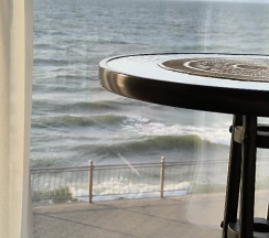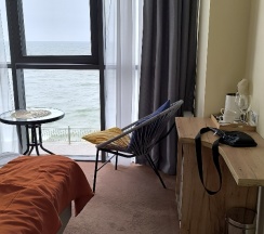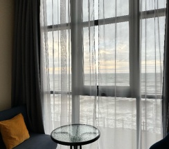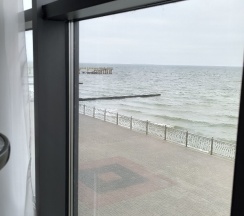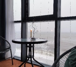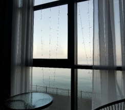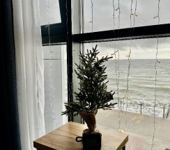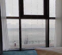 Летом частенько по вечерам, потягивая коктейли, сидели по соседству, Приглядели эти апартаменты. И вот выбор сделан и на Новогодние праздники мы заселились. Нам понравилось все (по крайней мере все, что мы ожидали, получили и даже больше. Вид из окна на море непередаваемый (и сильное волнение, и снег, и красивейшее небо, и чайки). Люди внизу не напрягали, а скорее развлекали как часть пейзажа. Они нам не мешали, занавески постоянно открыты, скрывать нам нечего. Порадовало новогоднее украшение номера, ежедневная уборка номера, комплимент от администрации (или владельцев). Всегда на связи, все вопросы были решены. На улицы был и мороз и сильный ветер, но в номере тепло и комфортно. Теплый пол в санузле, горячая вода и теплый полотенцесушитель. Все отлично.