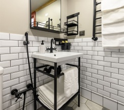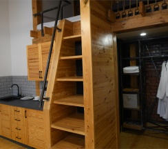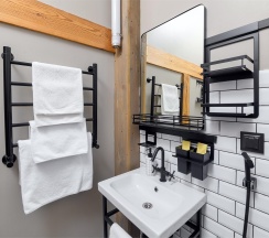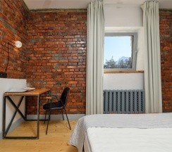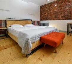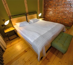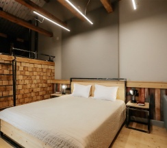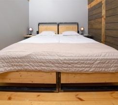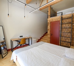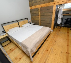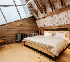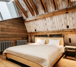 Уютный четырехместный номер с большой кроватью и дополнительным местом на двоих на антресоли. В категории представлено два номера.