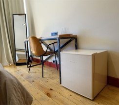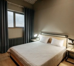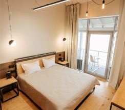 Уютный просторный двухместный номер с одной большой кроватью размером Queen size и видом во двор.