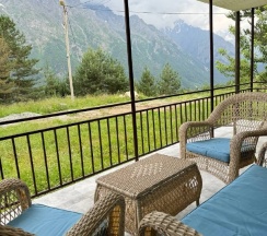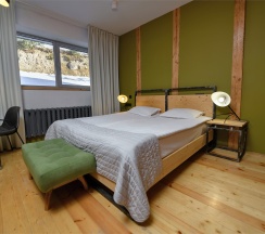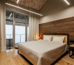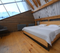 В категории представлено 2 уютных четырехместных номера с большой кроватью и дополнительным местом на двоих на антресоли. Каждый номер имеет собственную террасу с видом на горы.