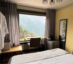 В отеле всё на высшем уровне! Уют, тишина, бомбические виды вокруг! Наслаждение и восторг не покидали нас! Останавливались семьей с детьми, удобно, что есть детская площадка и все туристические локации рядом. Стоит учесть, что отель находится на высоте и проезд к нему отнюдь не простой. Не знаю, насколько комфортно добираться на автомобиле с низкой посадкой, но с высокой точно получится. В номерах комфортно, есть всё необходимое, плюс вкуснейшая еда на полном пансионе, ну просто пальчики оближешь! Ну и особенно приятный бонус после активного трекинга - погреться в сауне. Спасибо вам за уют, гостеприимство и кота Михаила)!