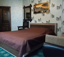 Просторный и светлый номер оформлен в современной стилистике. В этом комфортабельном номере есть большая двуспальная кровать.