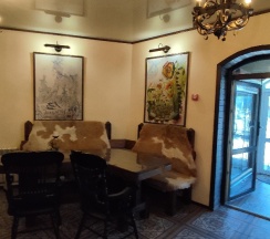 Еда вкусная, ценник высокий, очень сильно пахнет шкурами животных в кафе