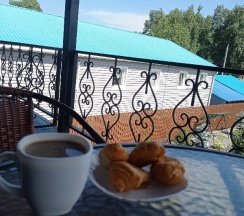 Такой шикарный вид на Катунь с балкона и с беседки. Все чисто, постоянно в течении дня на территории убирается очень милая и вежливая девушка. Полностью боагоустроенные номера. Самая главная фишка это конечно же вид с окна и с террасы. Также на территории хороший бассейн, сауна, бильярд, детская площадка большой батут. ( все бесплатно), еще прездка на чернов пплец ( но мы там были, не поехали) .Единственный минус нет микроаолновки и плиты, но это такая мелочь по сравнению со всеми остальными плюсами, что даже снижать оценку не честно, поэтому 100% 5 звёзд.