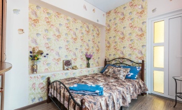 1 комната - двуспальная кровать, шкаф-гардероб, журнальный столик, зеркало, кондиционер, телевизор.
