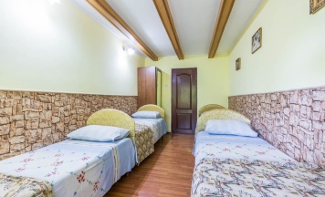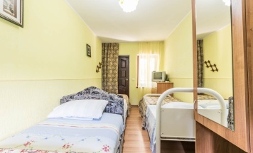 Двуспальная кровать, односпальная кровать, кондиционер, телевизор, шкаф-гардероб, тумбочка, кушетка, душ и туалет в номере. Холодильник на 3 номера. Общий балкон.
