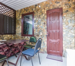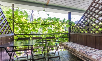 Выход на террасу, стол со стульями. Холодильник на 2 номера, душ и туалет на 2 номера.