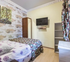 Четыре односпальные кровати, телевизор, зеркало, тумбочка, шкаф-гардероб.