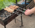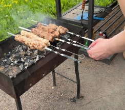 Есть недалеко оборудованная зона под барбекю и шашлыки (вам необходимо взять решетки, угли, шампура).