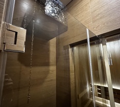 Мы отдыхали в номере с сауной и террасой. Халаты, тапочки, полотенца и все что нужно для отдыха было любезно предоставлено. Апартаменты полностью укомплектованы всей необходимой техникой и мебелью. Есть тёплый пол и кондиционер.