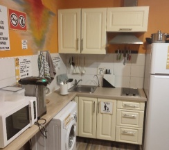 Добрый день.Тихо,спокойно,чисто в хостеле.Есть душевая,туалет, можно постирать вещи.Можно хорошо отдохнуть.Находиться хостел,недалеко от метро.