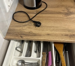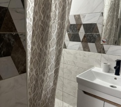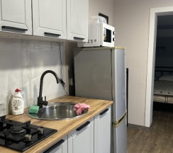 Новый ремонт в ванной комнате и на кухне. Вся техника рабочая. Есть вся необходимая посуда. Напор воды в ванной радует, никогда не было перебоев с горячей водой.
