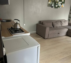 Не понравилось: Совмещенная с кухней спальня. Типа студия.