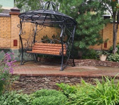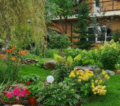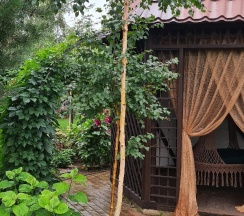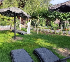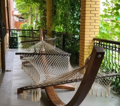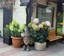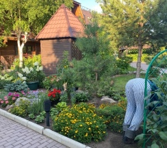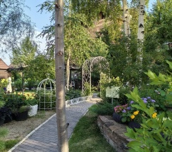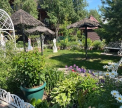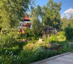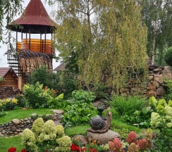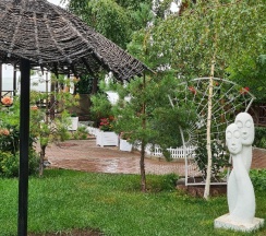 Особенно понравилась территория. За это надо ставить 10 звёзд, а не 5. Очень напомнила парк "Сады мечты" в Абакане. Возможно, это проект одного и того же автора. Восхищение на каждом шагу, а некоторые садовые скульптуры я б с удовольствием поставила у себя на участке. Территория большая и разнообразная, есть уединённые места, гамаки, беседки, лежаки. Тесно точно не будет.