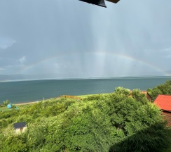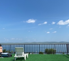 Отличный вид из окон на озеро. Большая парковка. В корпусе есть вай-фай (оказывается, мало на какой базе/в отеле в Жемчужном есть в принципе эта опция). Без вай-фая отлично работает мобильный интернет МТС, нам хватило для работы подключить два ноутбука.