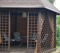 Есть авказона с сауной, своя столовая. Очень удобно. Грязи не заметили, но интерьер хотелось бы обновить.
