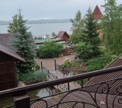 Рекомендую! Находится рядом с озером Шира в шаговой доступности, закрытая территория с красивым ухоженным ландшафтом, есть бассейн с сауной, кафе.