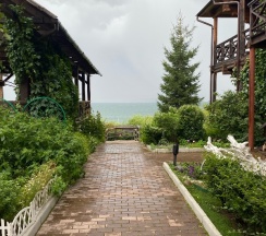 Очень красивая и ухоженная территория. Я думаю лучшая в Жемчужном. Можно отдохнуть и позагорать не выходя за ворота. Удобное расположение рядом с пляжем. Есть зона для костра, площадка с шезлонгами и видом на озеро, тренажёры.