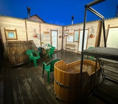 Заказали баньку Таёжную 08.09.2025. К нашему приезду баня была прекрасно натоплена, в предбаннике скамеечки застелены свежими простынками, веники березовый и мозжевеловый приготовлены. Очень приветливый банщик Олег нам заполнил холодной водой купель, в которую мы потом окунались после парения. Это добавило ярких эмоций!)) В баньке мы также обнаружили бутыль с питьевой водой, фен, зеркало, сушки и конфетки для чая, одноразовые тапочки в упаковке. Для любителей охладиться изнутри есть холодильник с безалкогольными напитками. Туалет рядом благоустроенный поразил своей чистотой. Приятно, когда за тебя всё продумали и сервис так организован, что ни о чем не надо беспокоиться. Однозначно рекомендую к посещению БлагоБани!