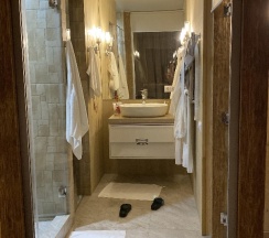 Начну с того, что я очень привередлива и к выбору отеля на Красной Поляне отнеслась серьезно,около 30 отелей просмотрела в интернете и из всех данный «Вершина» подошел по всем критериям! Абсолютно приемлимая цена проживания, по сравнению со многими отелями рядом. Терриориально очень удобно расположены апартмаменты, самый центр Красной Поляны, в пешей доступности канатные подъемники, Казино Сочи через дорогу, Горки молл и все рестораны) в соседнем доме есть Магнит. В самих апартаментах есть всё для удобства (чайник, небольшой холодильник, гардеробная, телевизор , wi fi) в номере была идеальная чистота, не понимаю почему кто-то писал про грязное постельное белье(( всё кипельно белое и новое! Помимо эстетичного интерьера , вида на Горы (взяли номер Мотья) , меня порадовало отношение хозяйки Ольги к своим гостям! Очень приятная девушка ❤️ Обязательно вернусь сюда!