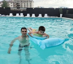 Бассейн немного прохладный(лично для меня), но особо хладнокровным, море в 4х минутах ходьбы, если бегом,то 2 минуты.