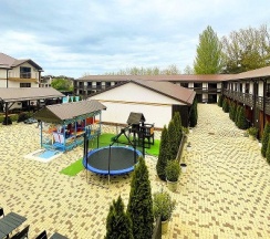 Самый крутой отель!!! Отдельная огороженная территория, большие домики, большой бассейн с раздельными зонами (глубокий больше 1,5 метра и детский), и очень вкусная столовая сразу на территории. Так же есть бесплатная парковка от отеля. А самый большой плюс - до моря 5 минут ходьбы!!! Всем советую!