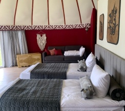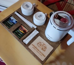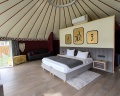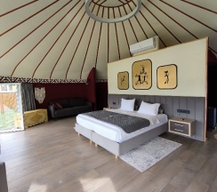 Номер комфортный, удобные кровати, красивые интерьеры в юрте, есть отопление, которое можно регулировать, душевая кабина, уборная, комплект полотенец, зубная паста щётка, гель для душа. Чайник, пакетики чайные.