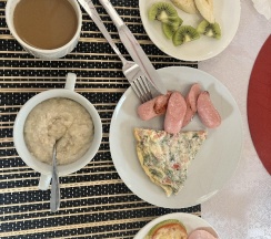 Завтраки и ужины богатые, разнообразные по системе шведского стола.