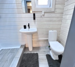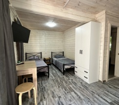 Снимали Деревянный домик на всю семью! На территории большая детская комната 🙆 дети от туда не выходили 😄 Бассеин большой, беседки! Очень большая территория класссссссс 👌