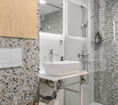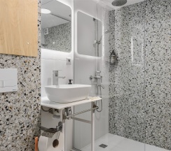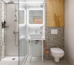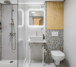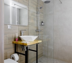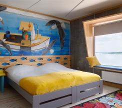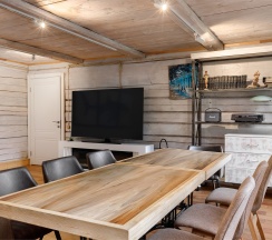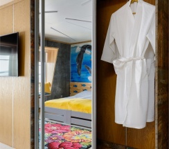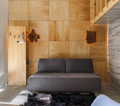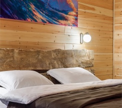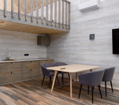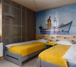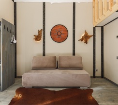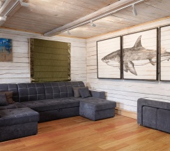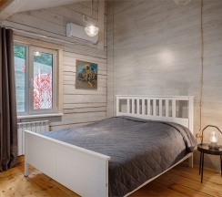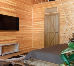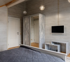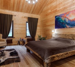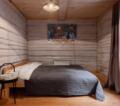 5 спальных комнат, в каждом номере 1 двуспальная кровать и собственный санузел. Также есть кухня со всем оснащением, сауна и зал.
