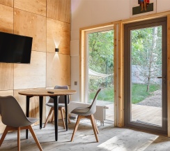 Устроили себе семейные выходные с друзьями.Выбрали это место и не прогадали. Тишина, лес, уютная теплая банька. Место хватило всем в просторных домиках.