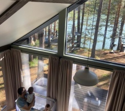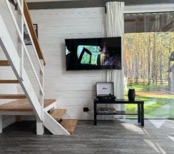 Отличная база отдыха! Большой, светлый дом. Две отдельные спальни на первом этаже и большая двуспальная кровать на втором. Идеальное место для семейного отдыха, тихого, спокойного. Очень вкусная еда в кафе. Приветливый персонал. Обязательно вернёмся!