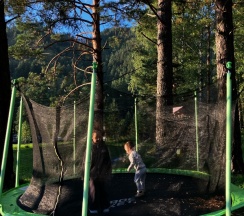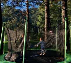 А так же большая территория , где не только погулять можно , но и поиграть в настольный теннис, деткам попрыгать на бабтуте, а так же поиграть в детской зоне.