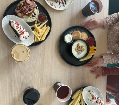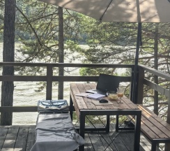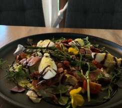 Во-вторых кухня! Есть несколько вариантов завтраков, что очень удобно, можно попросить чтобы завтрак сделали с собой и покушать в беседке около речки, что мы и сделали- +100 к эстетике и настроению! Так как на базе всего несколько домиков- готовят видно что сразу для вас, все свежее и вкусное!