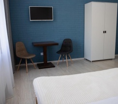 В номере есть телевизор, двуспальная кровать, диван-кровать, собственная ванная комната, туалетные принадлежности, полотенца. Есть возможность размещения семьи с 3 детьми в одном номере (дополнительное место на раскладушке). Подробности у администратора.