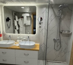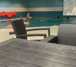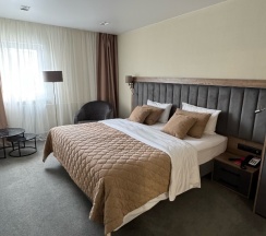 Очень понравился отель, просторный уютный номер, жили на пятом этаже, большая кровать с качественным матрасом, в номере есть всё необходимое - гель для душа, мыло, шампунь, тапочки, чайник, в холлах стоят кулеры с горячей и холодной водой. Ходили также и на завтрак - шведский стол, несколько видов каш, нарезки, горячее (гречка, сосиски, гуляш), запеканка, омоет, блины, другая выпечка, чай, кофе и проч. Очень вкусно и разнообразно. Однозначно рекомендую. В бассейн не успели сходить, час бассейна входит в стоимость проживания.