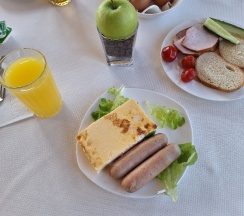 Понравилось: Завтрак - заказ из предложенных блюд + буфет. Отлично. Расположение - тихо и уединенно, достопримечательности рядом.
