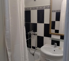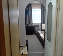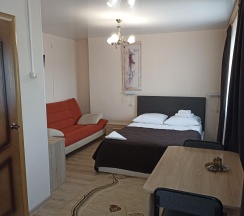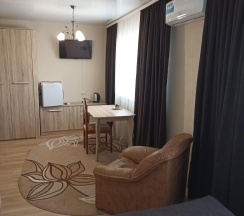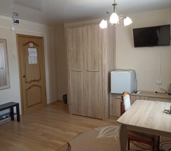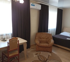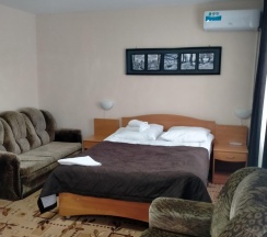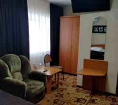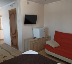 Однокомнатный номер: семейная кровать, телевизор ЖК, комод, холодильник, шкаф для одежды, обеденный стол (либо журнальный столик), стулья, чайник, прикроватная тумба.,диван, кресло, сплит система-кондиционер. В ванной: ванна. , фен, бойлер. Возможно размещение до 2 гостей с доплатой. Бесплатный Wi-Fi Интернет. Предоставляется комплект одноразовых туалетных принадлежностей: мыло, шампунь, зубная щетка и зубная паста, тапочки, халат, рожок, губка для обуви. По запросу бритвенный набор. Площадь номеров от 20,7 кв.м.до 23,4 кв.м.