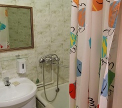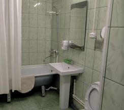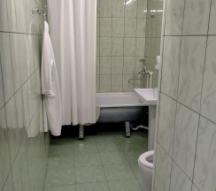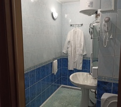 В ванной комнате: душевая кабинка. бойлер, фен. Предоставляется комплект одноразовых туалетных принадлежностей: мыло, шампунь, гель и лосьон для душа, зубная щетка и паста, а также шапочка для душа, тапочки, халат, рожок и губка для обуви. По запросу бритвенный набор.