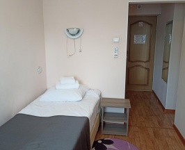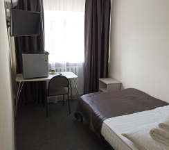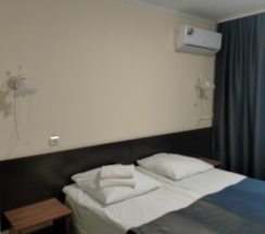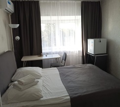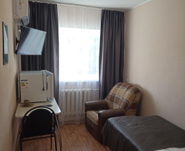 Однокомнатный номер: односпальная кровать, телевизорЖК, стол журнальный (либо обеденный стол), кресло (либо стул), прикроватная тумба, вешалка для одежды (либо встроенный шкаф). мини холодильник, сплит система-кондиционер. . В ванной: ванна (либо душевая кабинка),. бойлер, фен, Бесплатный Wi-Fi Интернет. Предоставляется комплект одноразовых туалетных принадлежностей: мыло, шампунь. Площадь номеров от 12,0 кв.м. до 13,9 кв.м.