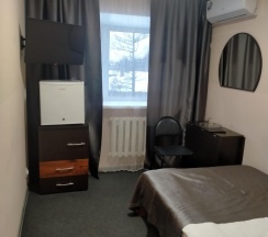 Однокомнатный номер: полутороспальная кровать , ЖК телевизор, столик журнальный (либо обеденный стол), стул (либо кресло), вешалка для одежды, прикроватная тумба, холодильник, сплит система-кондиционер. В ванной: ванна, бойлер, фен. Бесплатный Wi-Fi Интернет. Предоставляется комплект одноразовых туалетных принадлежностей: мыло, шампунь. Площадь номеров от 12,9 кв.м. до 15,6 кв.м.