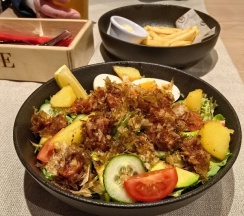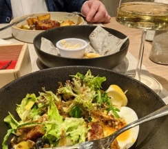 При отеле есть ресторан "Düne", а котором пару раз ужинали и обедали, все вкусно с местным калоритом. В нем же проходили отличные завтраки по системе шведский стол. Каждый может найти себе еду по душе (яичница, омлет, овощи на пару, наггетсы, сосиски, колбасы, два вида каш, красная рыба, шпроты, сырная и мясная нарезки, сладкое, овощи, творог, фрукты, много топпингов сладких и не сладких, игристое на завтрак каждый день, чай, кофе на выбор).