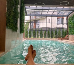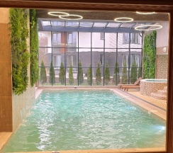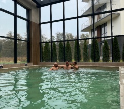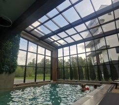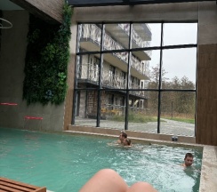 Если плохая погода,можно поплавать в крытом бассейне с панорамными окнами,погреться в 5 разных парилках