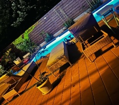Отдыхали вдвоем, нам все понравилось ! Чисто, очень уютно, белоснежное постельное белье и полотенца. Бассейн крутой, вода чистая, есть детская зона в бассейне. Рядом много лежаков. Есть мангальная зона и столики во дворе. Территория очень ухоженная. В номере есть чайник, фен, телевизор, холодильник и классный балкон) приятный персонал, Валерий очень внимательный) спасибо Вам за отдых. Нам очень жаль уезжать, но мы обязательно вернёмся!