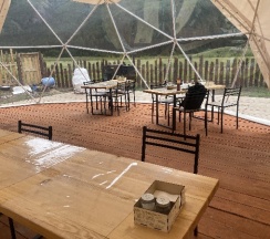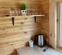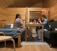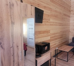 Были в июле 2025г с группой. Понравилось размещение базы, домик, питание. Всё новое, современное; кровать удобная, мягкая. Один нюанс - заклинивает ручку в двери санузла (домик 13). Нет фена, можно бы укомплектовать. Есть чайник, чашки, микроволновка, мини-холодильник с вкусняшками за доп.плату, шкаф.